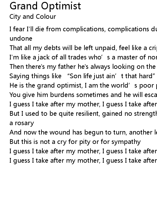 | He is the grand optimist, I am the world’s poor pessimist | |