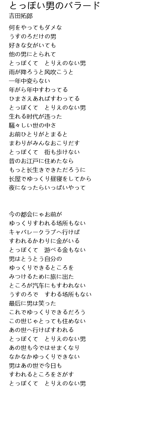 とっぽくて とりえのない男 |