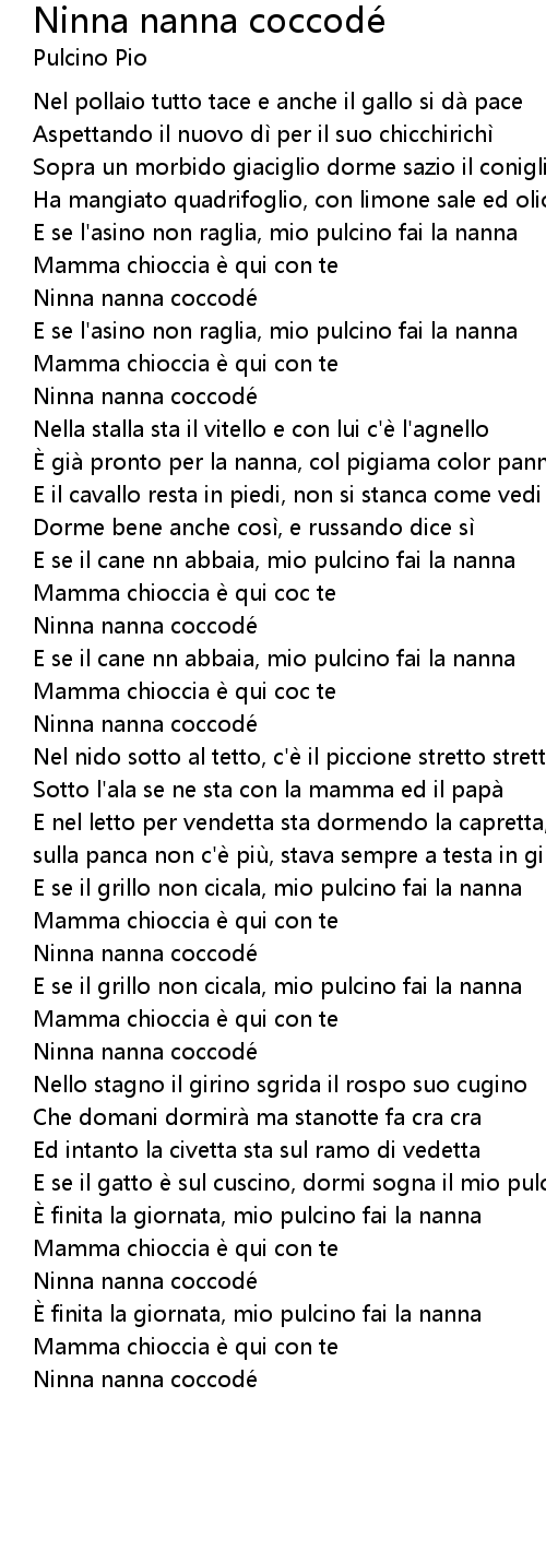 | [00:29.56] | E se l'asino non raglia, mio pulcino fai la nanna |