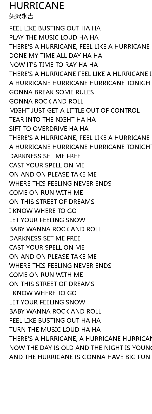 | THERE'S A HURRICANE, A HURRICANE HURRICANE IN ME | |