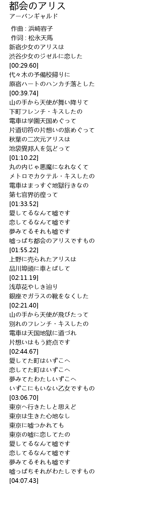 | [01:49.24] | 嘘っぱち都会のアリスですもの |