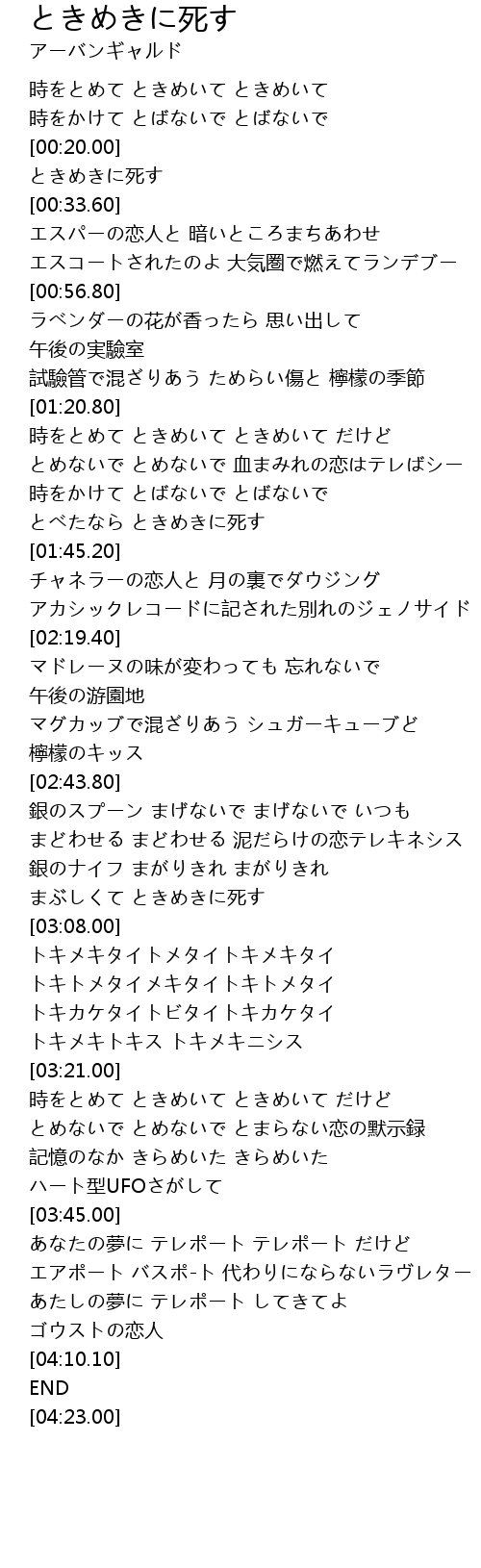 | [00:20.20] | ときめきに死す |