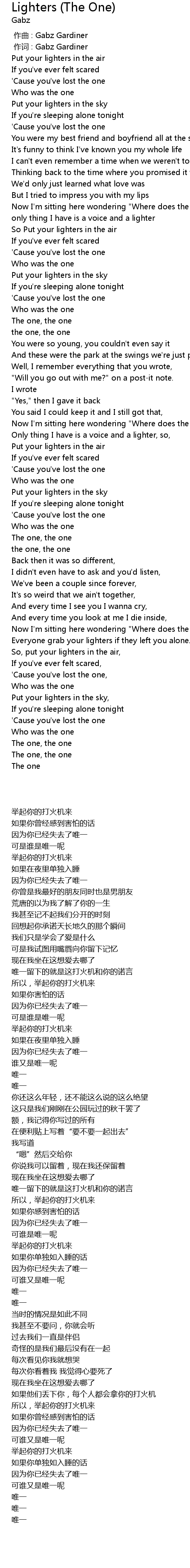 | 歌曲 | Lighters (The One) |