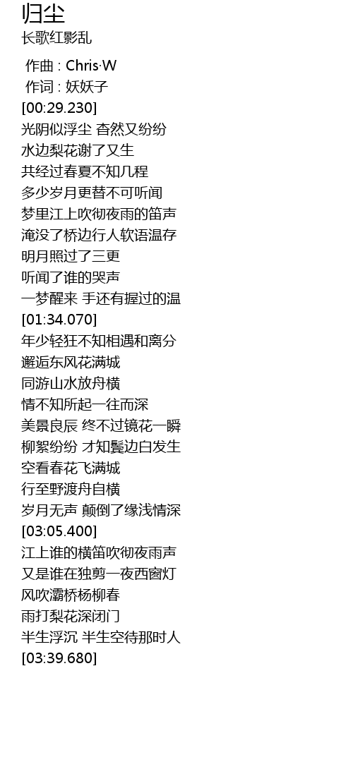 | [00:31.410] | 光阴似浮尘 杳然又纷纷 |