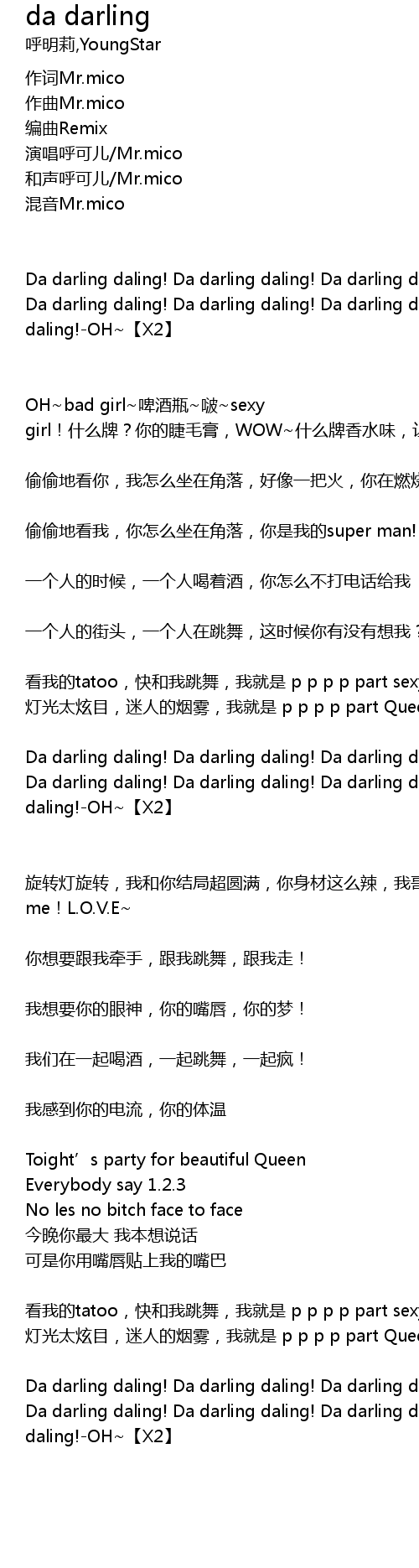 | Da darling daling! Da darling daling! Da darling daling! Da darling daling! OH X2 |