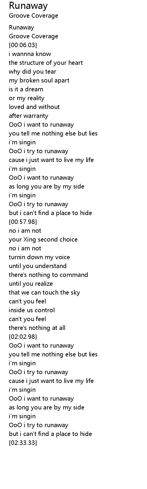 | [00:30.53] | OoO i want to runaway |