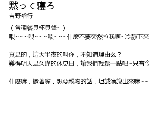 | 歌曲 | 黙って寝ろ |