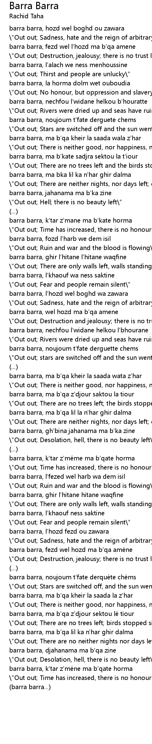 | barra barra, nechfou l' widane helkou l' bhourane | |