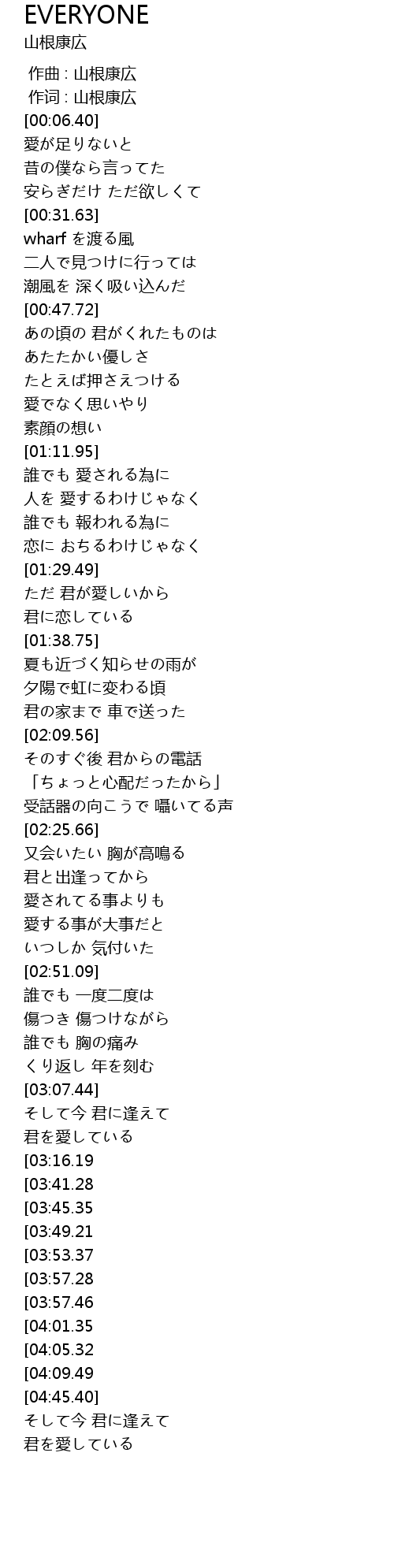 | [00:01.00] | 作词 : 山根康広 |
