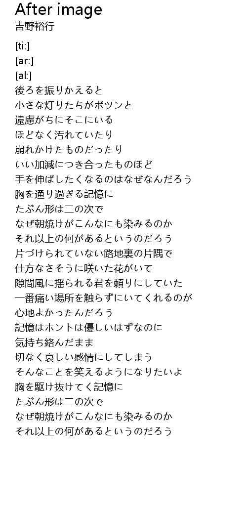 | [03:54.56] | なぜ朝焼けがこんなにも染みるのか |