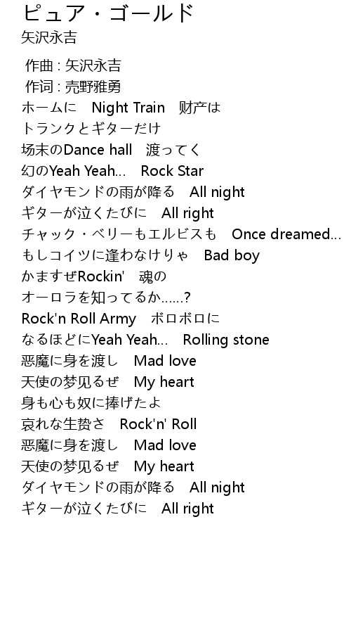 | [00:00.00] | 作曲 : 矢沢永吉 |
