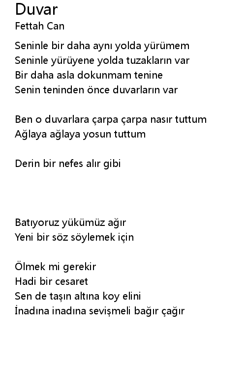 | 歌曲 | Duvar |