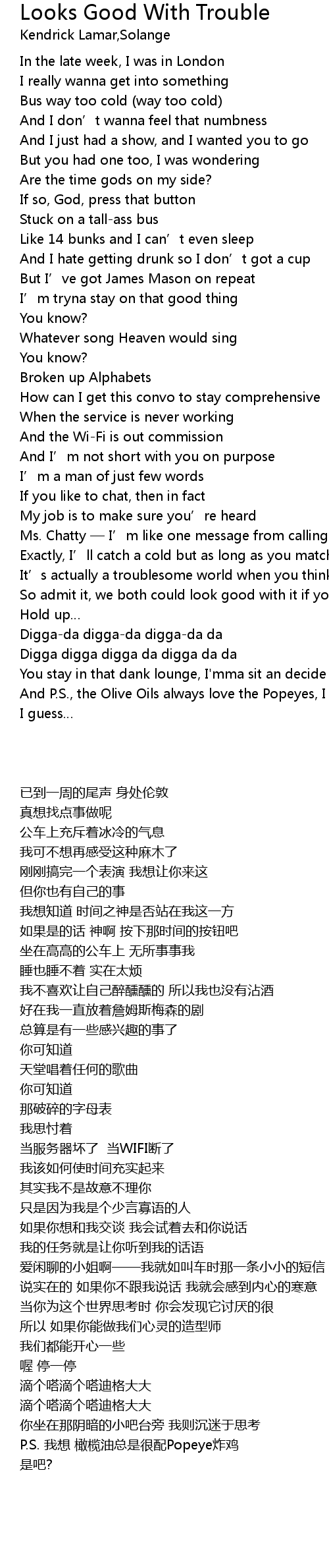 | 歌曲 | Looks Good With Trouble |