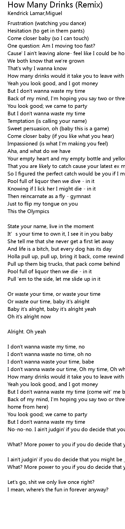 | 歌曲 | How Many Drinks (Remix) |