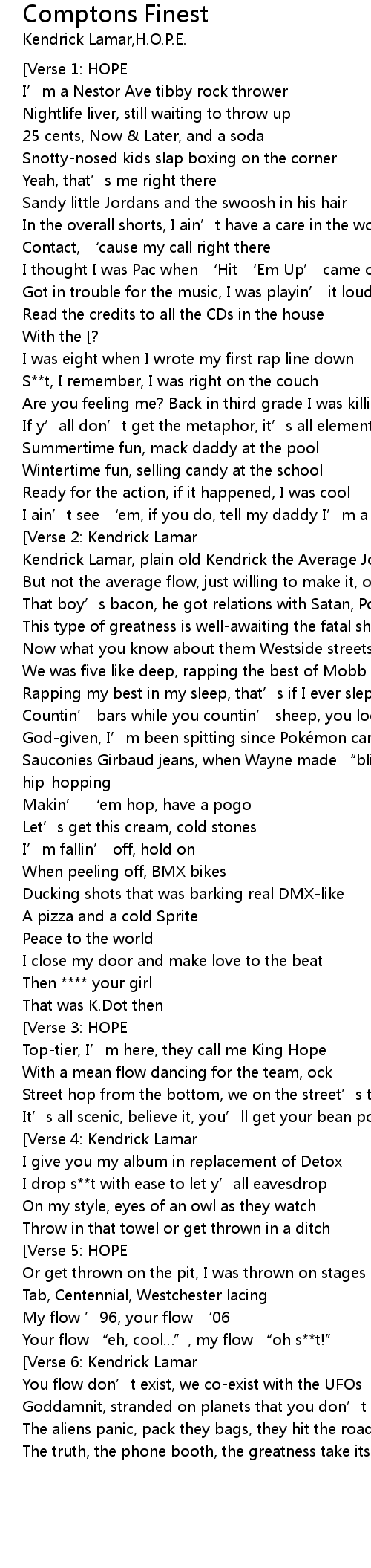 | [01:04.562] | Kendrick Lamar, plain old Kendrick the Average Joe |