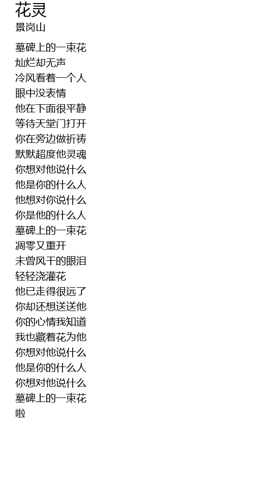 | [00:13.85] | mù bēi shàng de yī shù huā |