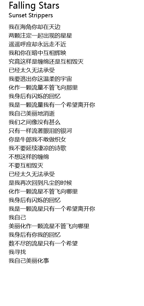 | 歌曲 | Falling Stars |