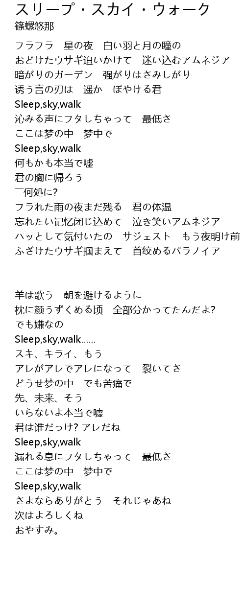 | Sleep, sky, walk | |