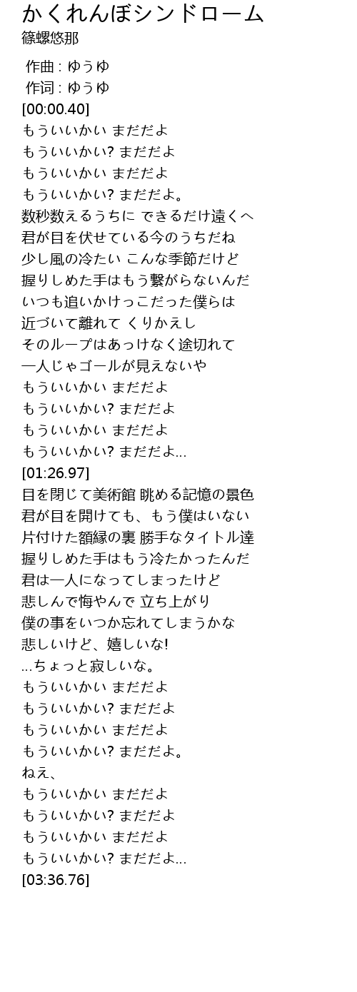 | [00:44.15] | いつも追いかけっこだった僕らは |