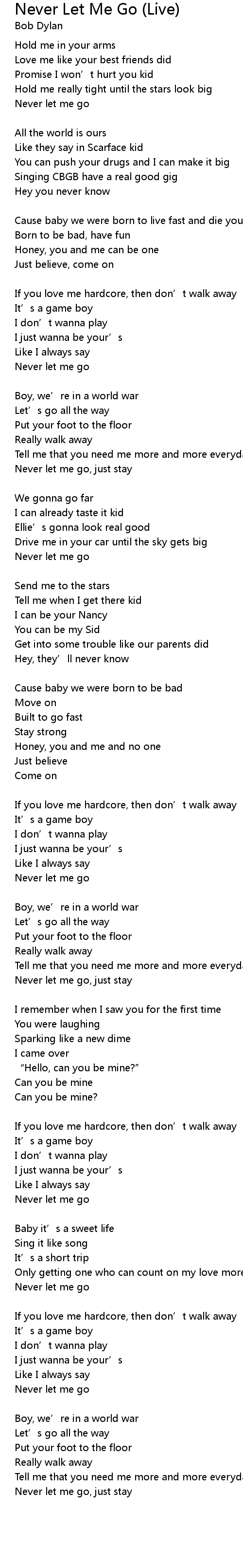 | Never let me go, just stay | |