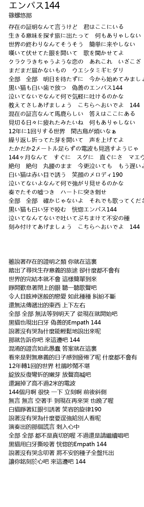 | 歌曲 | エンパス144 |