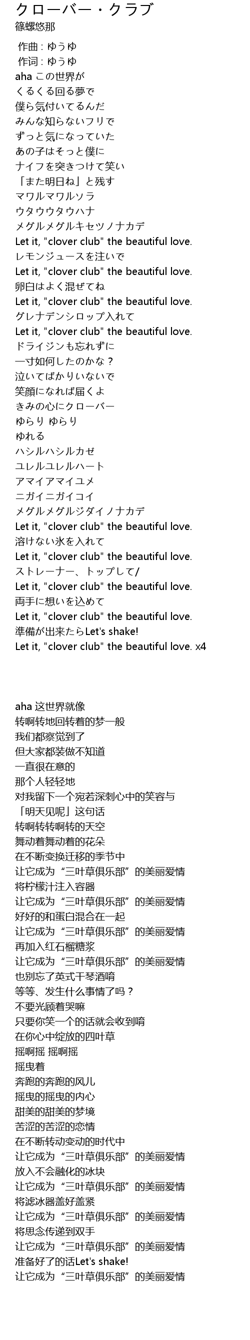 | [03:55.670] | Let it, " clover club" the beautiful love. x4 |