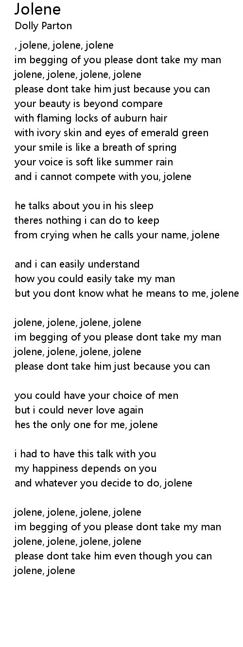 , jolene, jolene, jolene |