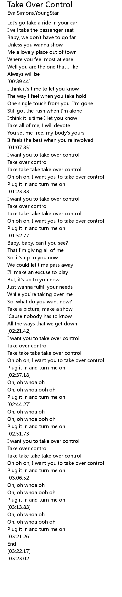 Oh oh oh, I want you to take over control |