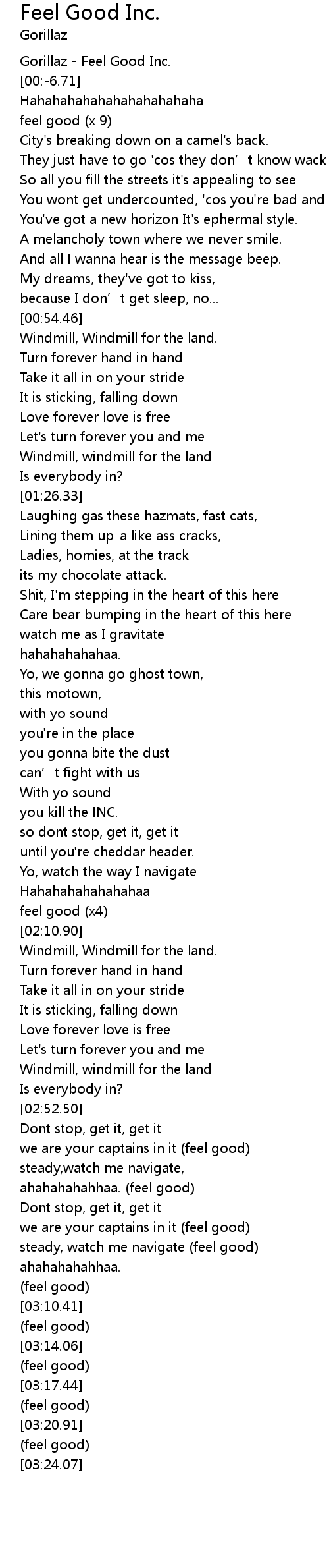 | [03:19.02] | (feel good) |