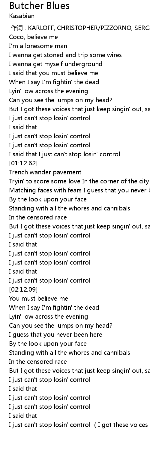 | [03:34.62] | I just can' t stop losin' control I got these voices |