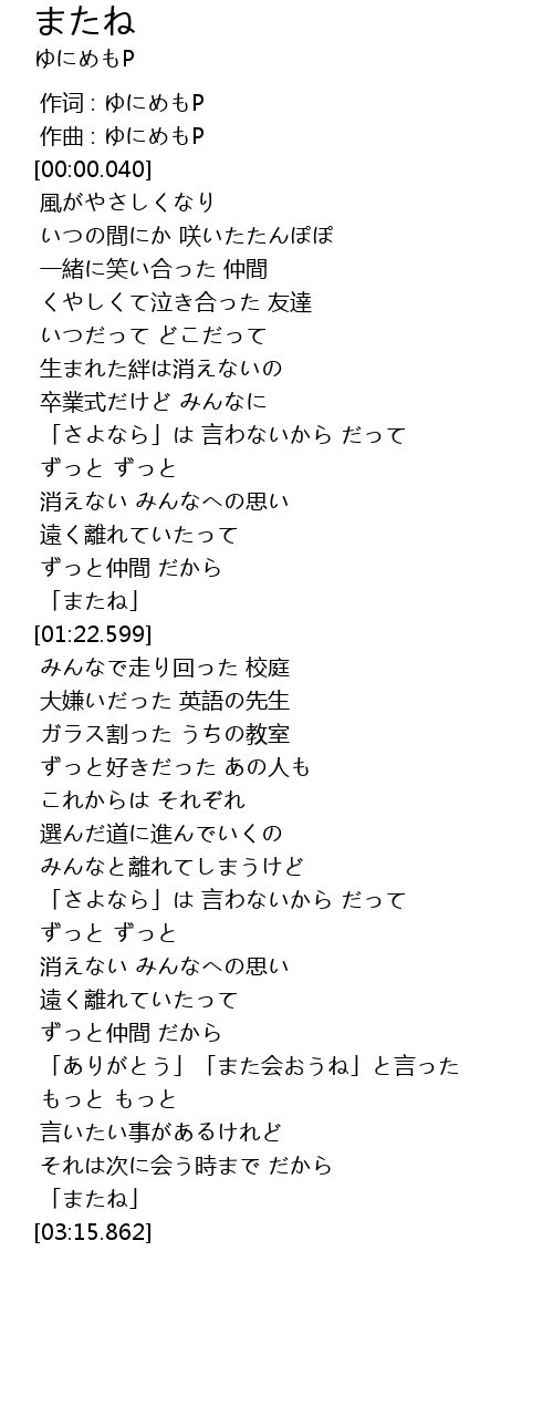 | [03:00.926] | 「またね」 |