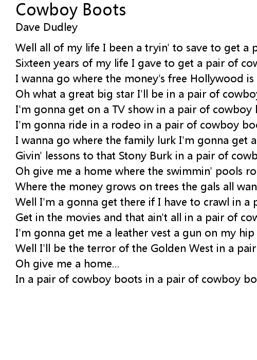 Well all of my life I been a tryin' to save to get a pair of cowboy boots |