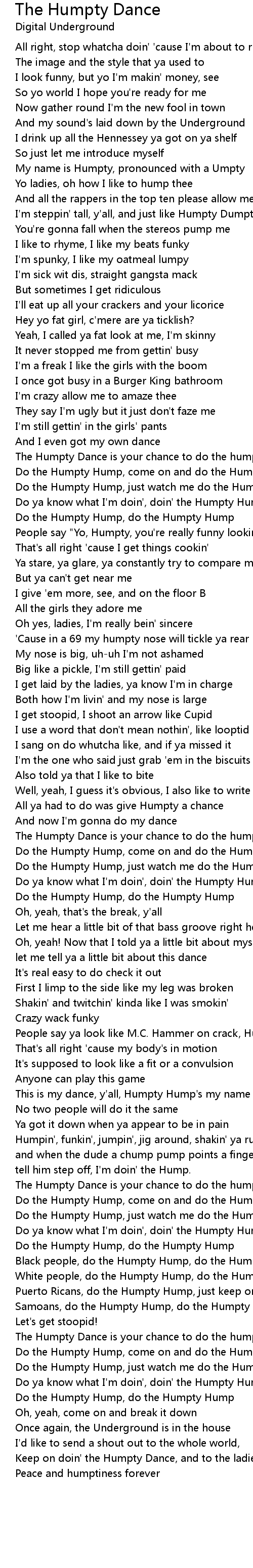 Keep on doin' the Humpty Dance, and to the ladies |