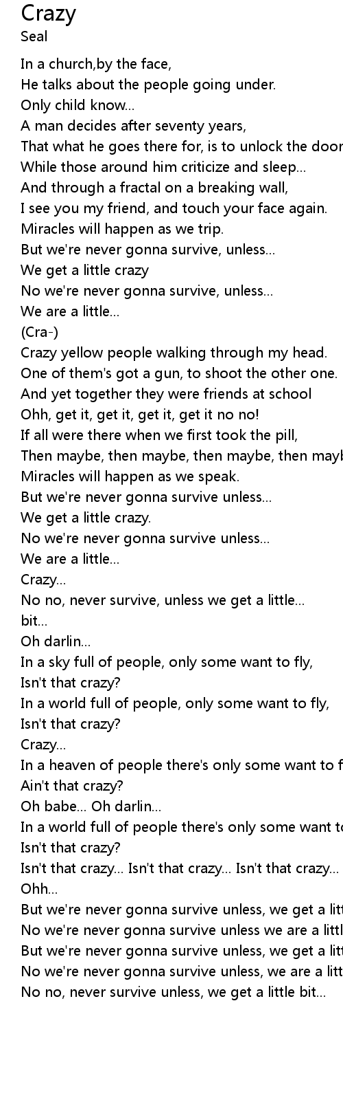 But we're never gonna survive unless, we get a little crazy.. crazy.. |