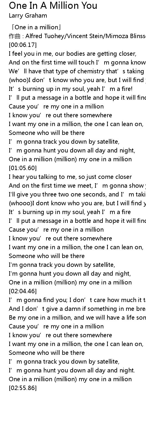 | [00:43.39] | I want my one in a million, the one I can lean on, |