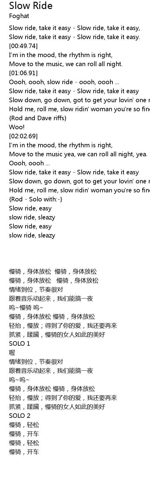 Oooh, oooh, slow ride - oooh, oooh ... |