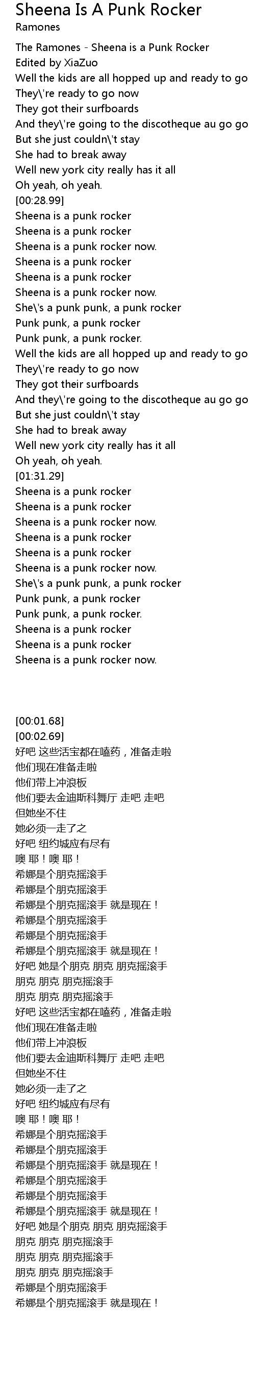 Sheena is a punk rocker |