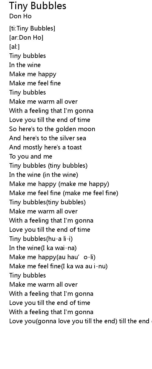 | [01:04.35] | Tiny bubbles (tiny bubbles) |