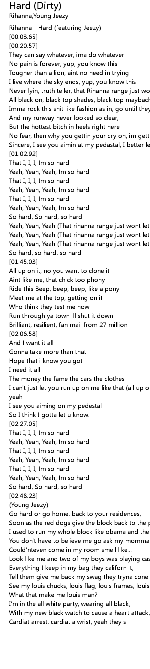 | [00:00.43] | Rihanna - Hard (featuring Jeezy) |