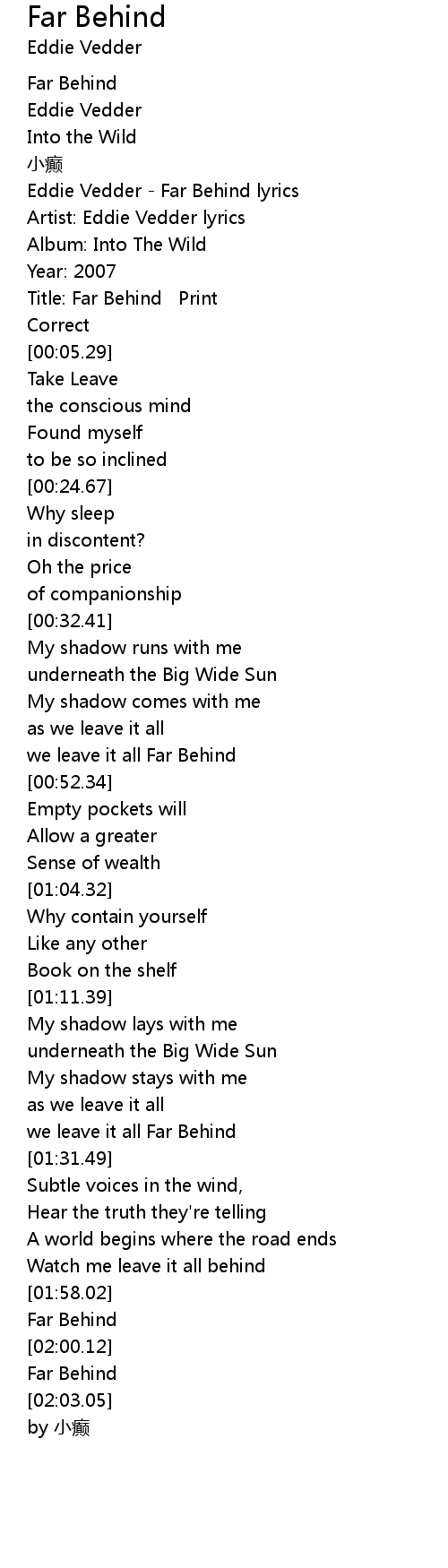 | [00:02.34] | Eddie Vedder - Far Behind lyrics |