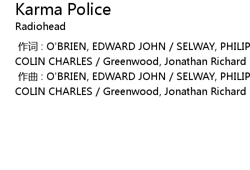 | [00:00.000] | 作词 : O'BRIEN, EDWARD JOHN / SELWAY, PHILIP JAMES / GREENWOOD, COLIN CHARLES / Greenwood, Jonathan Richard Guy / YORKE, THOMAS EDWARD |