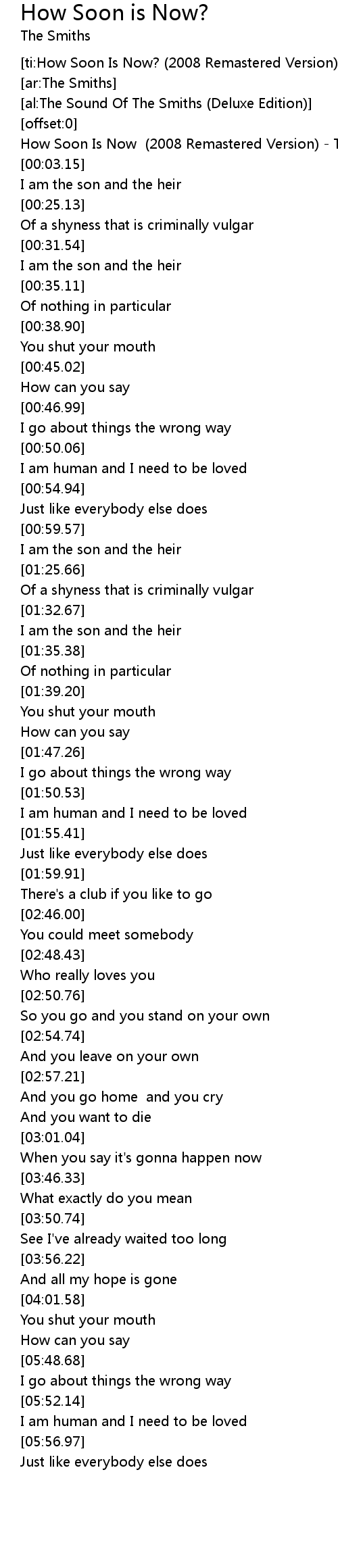 [00:00.58] How Soon Is Now (2008 Remastered Version) - The Smiths