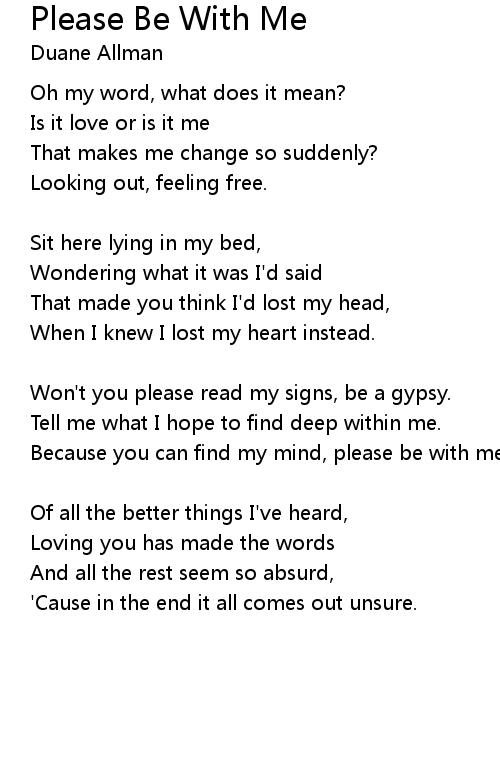 Won't you please read my signs, be a gypsy. |