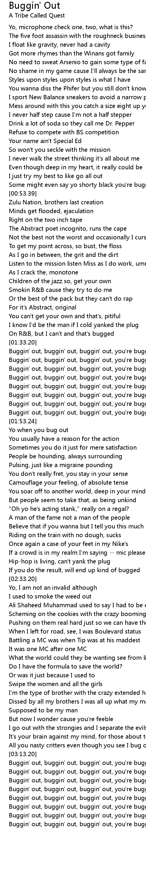 Buggin' out, buggin' out, buggin' out, you're buggin' out |