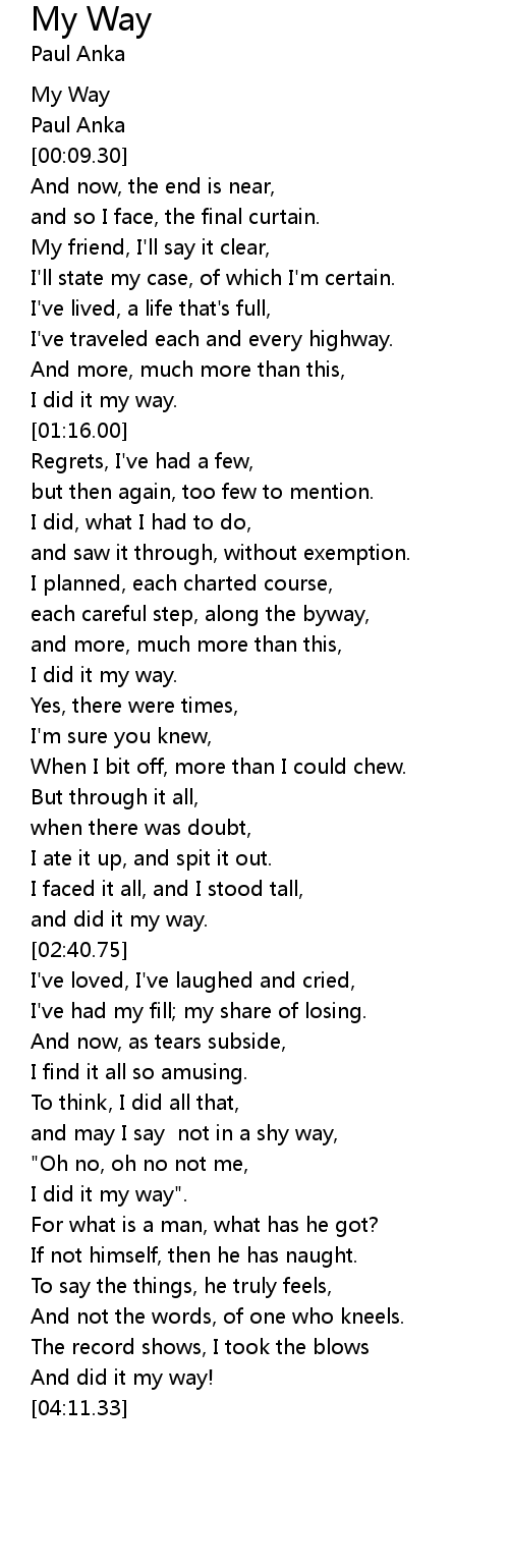 I did it my way". |