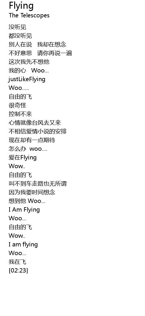 | [02:19] | wǒ zài fēi |