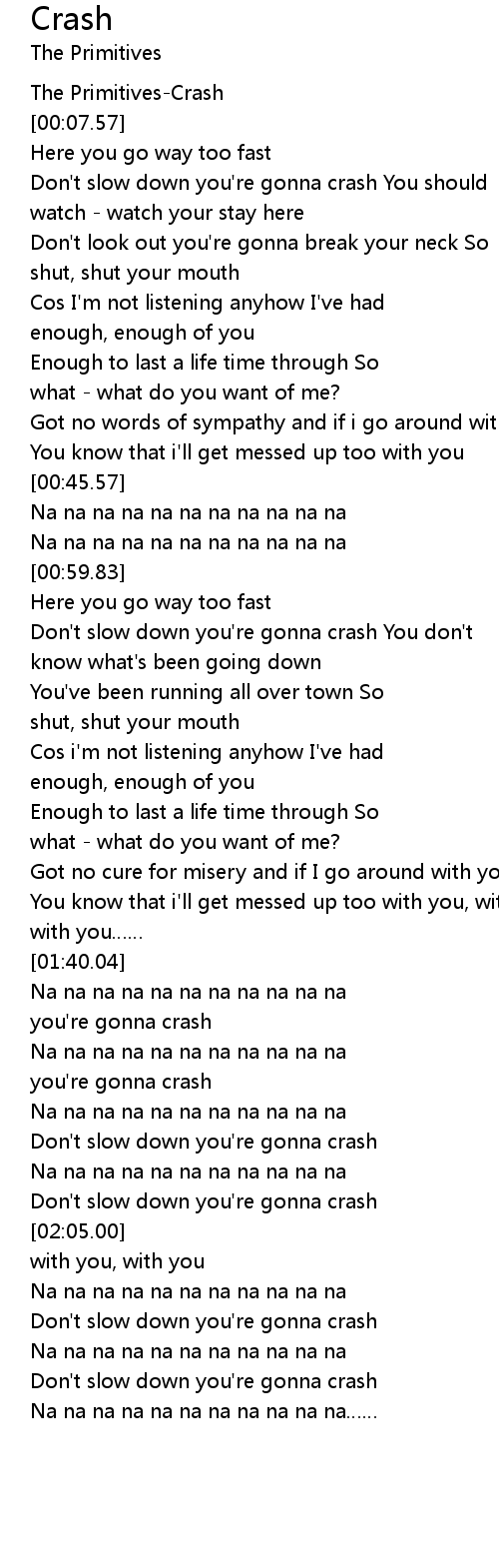 | [01:51.48] | you' re gonna crash |