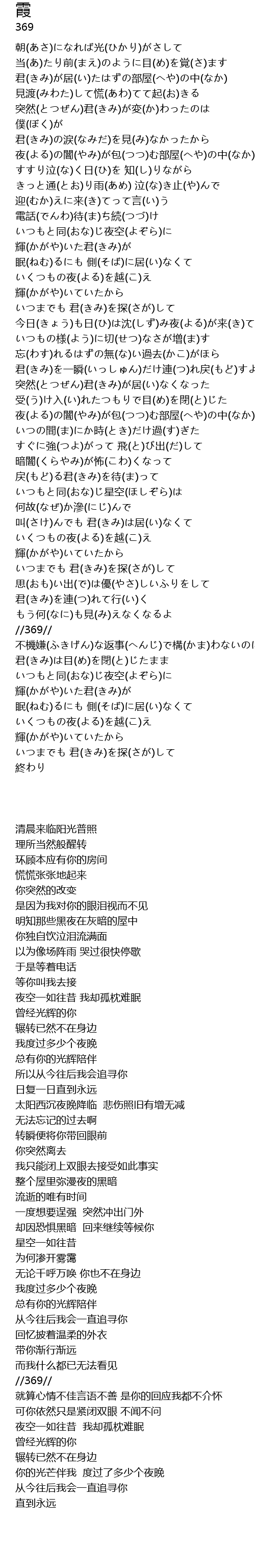| [03:42.68] | いつまでも 君(きみ)を探(さが)して |