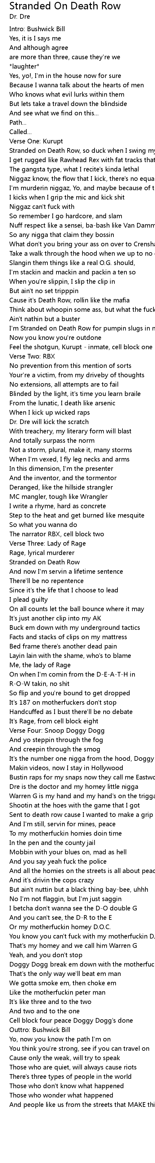 I'm Stranded on Death Row for pumpin slugs in motherfuckers |