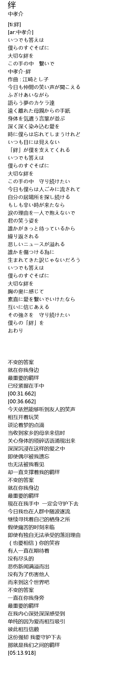 | [00:31.662] | 中孝介-絆 |